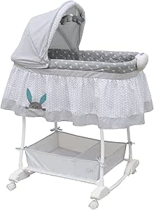 And 3 months old or less Rocking or stationary bassinet features comforting music soft lights and soothing vibrations that will help lull little ones to sleep Adjustable canopy with 2 soft toys will delight little ones Large storage basket provides a convenient place. Bily Rocking Bassinet Ocean. This bassinet is perfect in the early months when your newborn alternates between short periods of sleep and wakefulness.